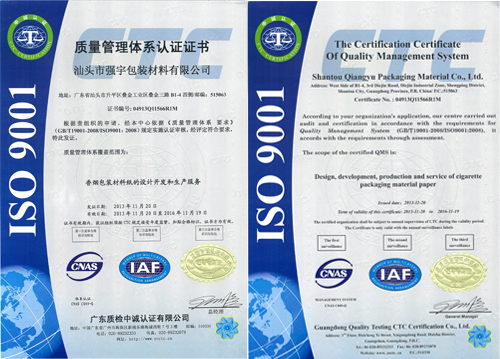 一、公司力求按国际一流标准进行规范管理,以便最大限度满足客户需要。为此,通过了ISO9001:2008国际质量管理体系认证。按照其标准要求建立了公司质量管理体系。制订了公司的《质量手册》,制订了23个书面的质量体系程序,85个作业指导书和工作文件,92个记录表格,规定了实施质量体系要素所涉及的活动,明确其目的、范围、职责、运作过程、相关文件和记录。公司严格按照体系文件实施和监控这些过程,并实现持续改进。